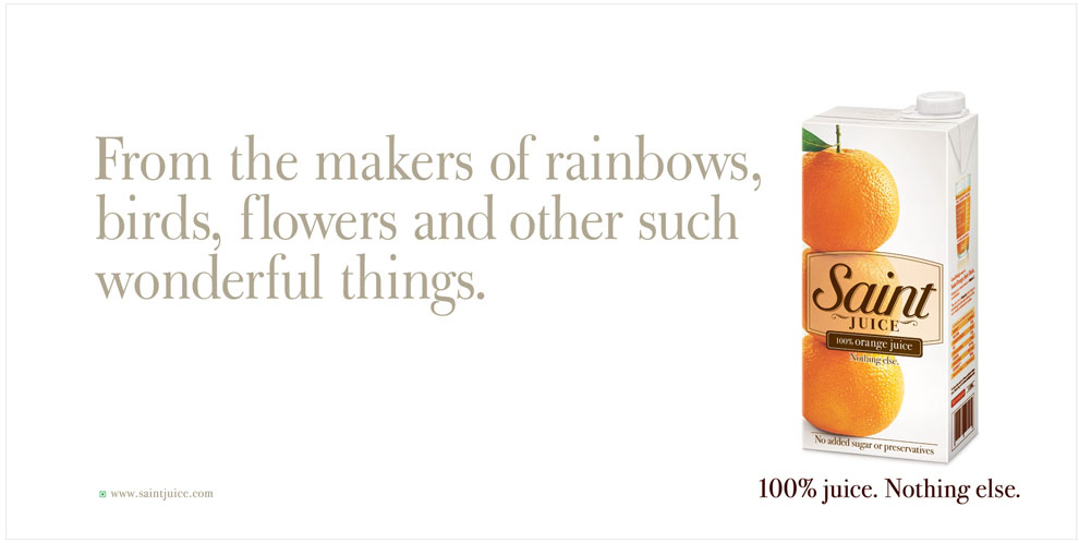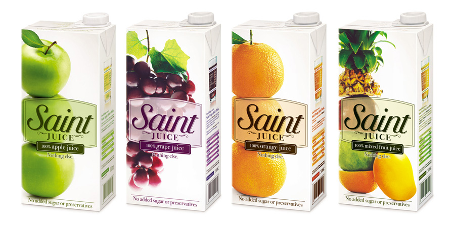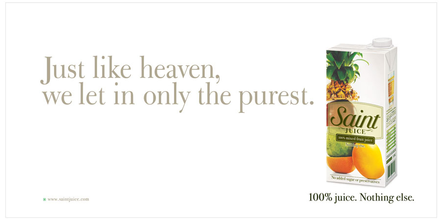 We came up with the name Saint, an evocative, simple and memorable word. The effort with the packaging and every piece of communication was to deliver the most divine juice experience ever.